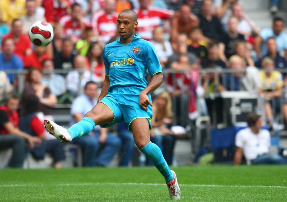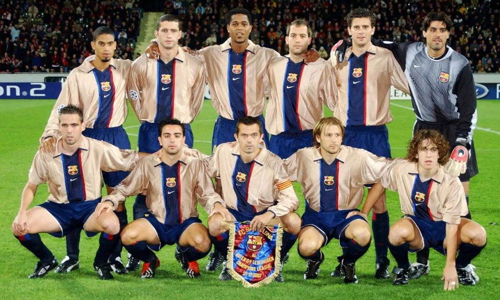 This kit is much better than the one that came after it with the red and blue sash on a dark navy shirt, but it is still excellent. It would be remiss not to include Patrick Kluivert wearing a gold Barcelona uniform with a wide red and blue stripe in the middle.