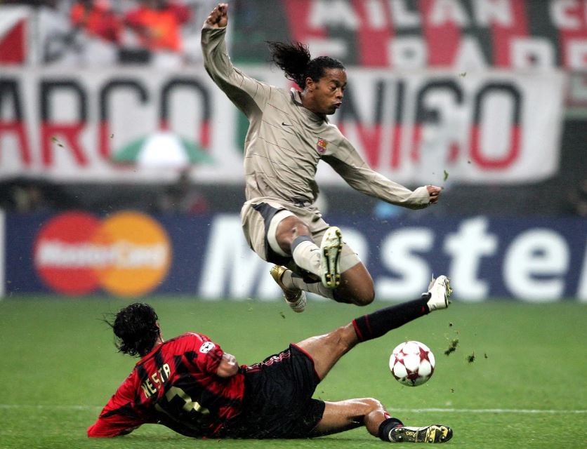 The 2003–04 away kit took the traditional Barcelona red and blue in a fresh new direction by adding horizontal pinstripes over the grey jersey. Although it served as the team’s third uniform at the time, this shirt is a stand-alone design classic that is arguably most remembered for that brilliant toe-pointed move by Ronaldinho at Stamford Bridge in 2005.